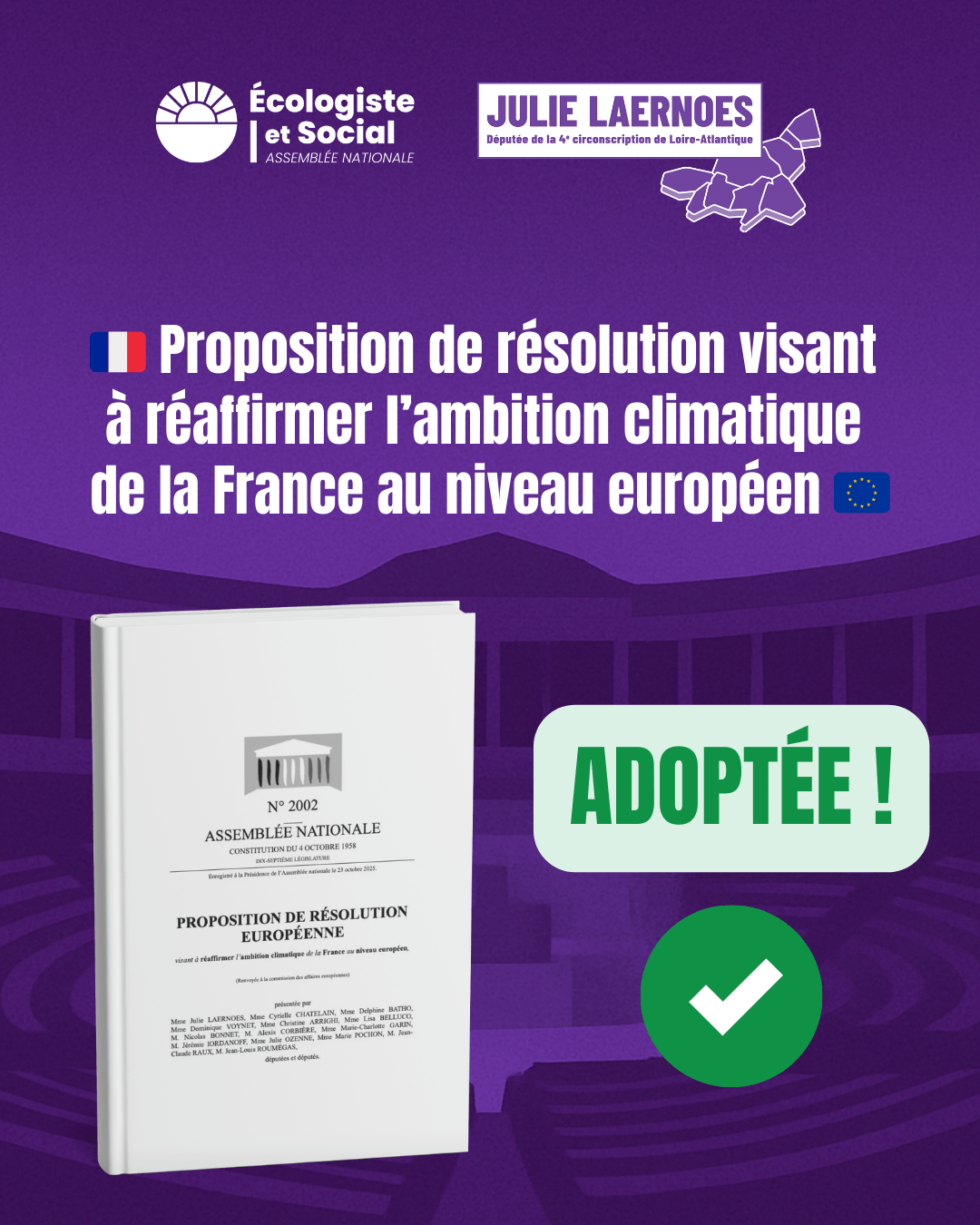 Ambition climatique de la France : adoption de ma proposition de résolution