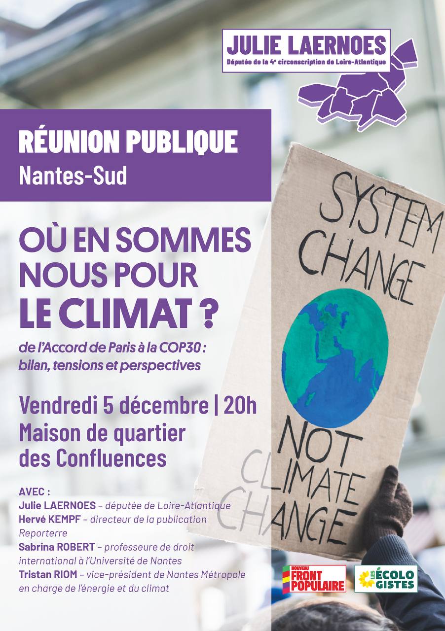 Vendre 5 décembre prochain, j’organise une réunion publique consacrée aux 10 ans de l’Accord de Paris, à la COP30 et au backlash écologique.